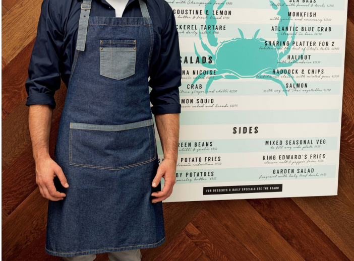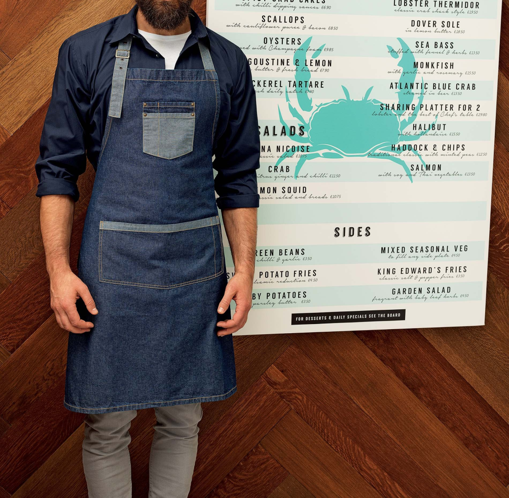 Avental de peito com contrasteREF: AVE.4081.01/1185 Avental de peito com contraste visível nos bolsos e nas fitas e com bolsos chapa. Tamanhos:TUcomposição:70 % Algodão - 30% Poliéstercores disponíveis: 01 Ganga preta 02 Ganga azul Solicite orçamento