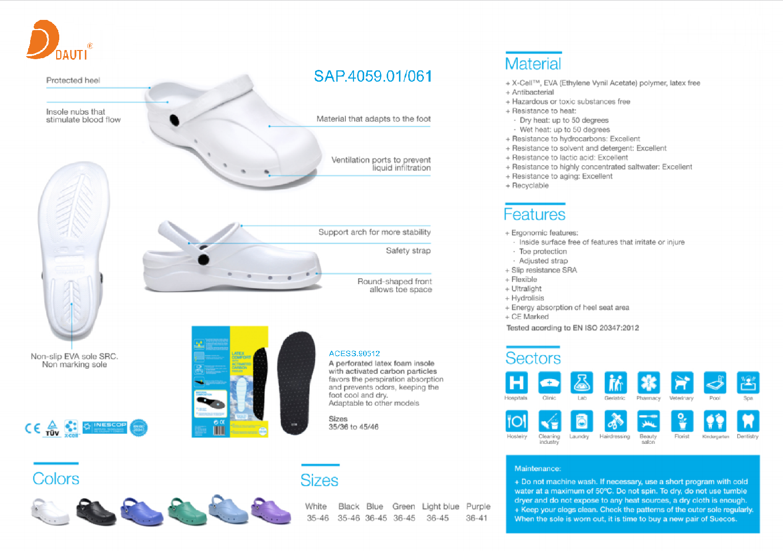 SocasREF: SAP.4022.01/061 Socas muito confortáveis e acessíveis. Modelo fechado. Comprar palmilha á parte. Tamanhos:35 - 46cores disponíveis: 01 Preto 07 Verde 08 Roxo 06 Branco 09 Azul claro 10 Azul oceano Solicite orçamento